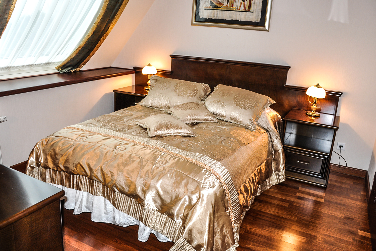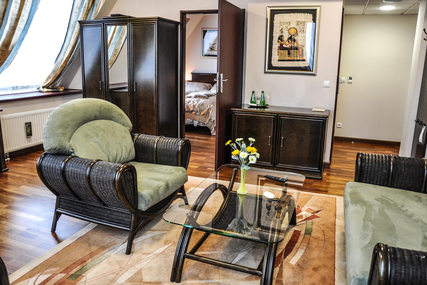 Wyjątkowo wyposażony apartament o powierzchni ok. 43 m2 pozwoli na luksusowy wypoczynek o najwyższym standardzie. Pokój składa się z sypialni z łóżkiem małżeńskim ( 160 x 200 cm) i łazienką oraz przestronnego salonu z odrębną łazienką dla gości. W cenie noclegu: śniadanie w formie bufetu, butelka wody mineralnej, bezprzewodowy dostęp do internetu w pokoju, dostęp do kawiarenki internetowej w lobby (24h), basen z hydromasażami w wyznaczonych godzinach, studio fitness, podatek VAT. Pokój jest dostępny od 15:00 do 11:00 dnia następnego z wyjątkiem przypadków Late Check Out. Pokój dostępny dla 2 osób.